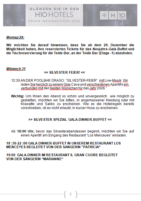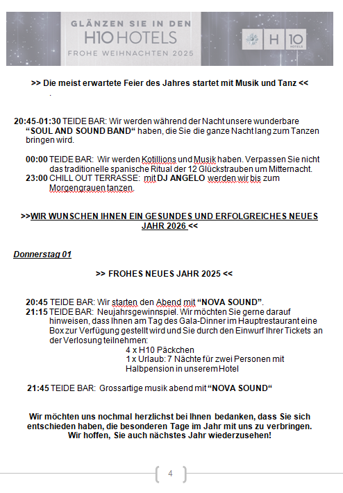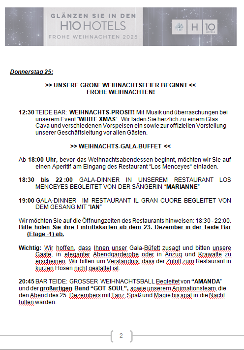 Wir freuen uns, Ihnen unser Weihnachts- und Silvesterprogramm vorstellen zu dürfen, von dem wir hoffen, dass es Ihnen gefällt und Ihren Aufenthalt unvergesslich macht.