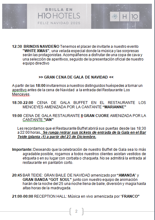 Nos complace presentarles nuestro Programa de Navidad y Fin de Año, que deseamos sea de su agrado y haga que su estancia sea inolvidable.